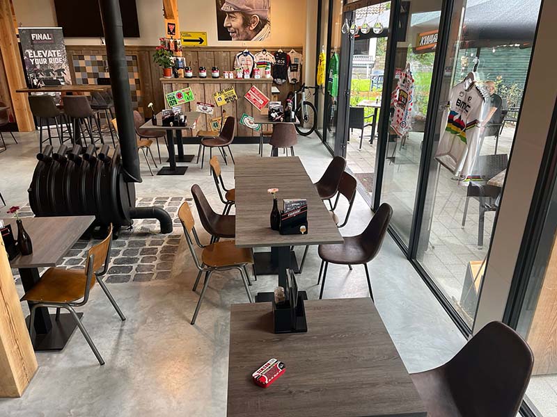 Voor het bekende wielercafé Village Départ in Eerde heeft AV Betonvloeren onlangs een superstrakke woonbeton vloer gerealiseerd. In dit sfeervolle café met een industriële, knusse uitstraling is het regelmatig een drukke bedoeling. Om ervoor te zorgen dat de vloer volledig aansluit bij de stijl, en daarnaast ook nog geschikt is om regelmatige belasting te verdragen, hebben wij in Eerde deze robuuste, industriële woonbeton vloer gelegd.